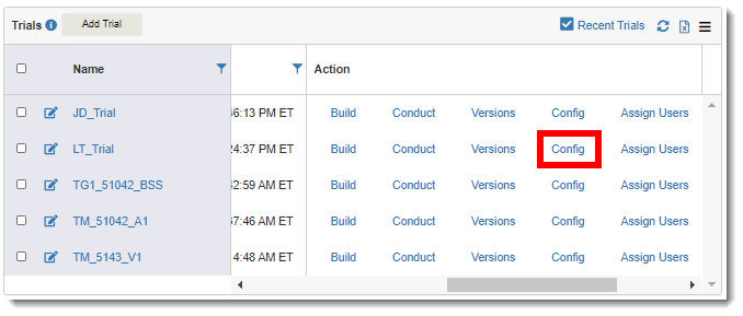 1. Access the Trials page. (See View Trials for guidance.)