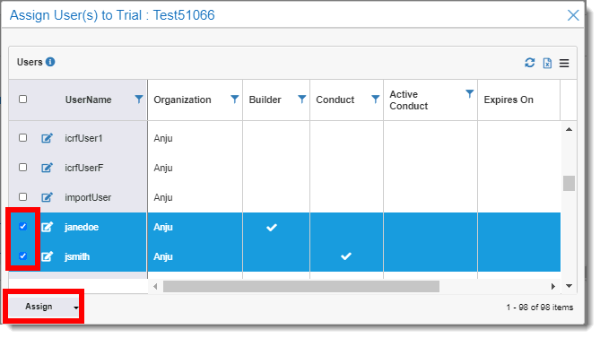 · You can also assign users to a trial via the Assign Trials link in the Users page.